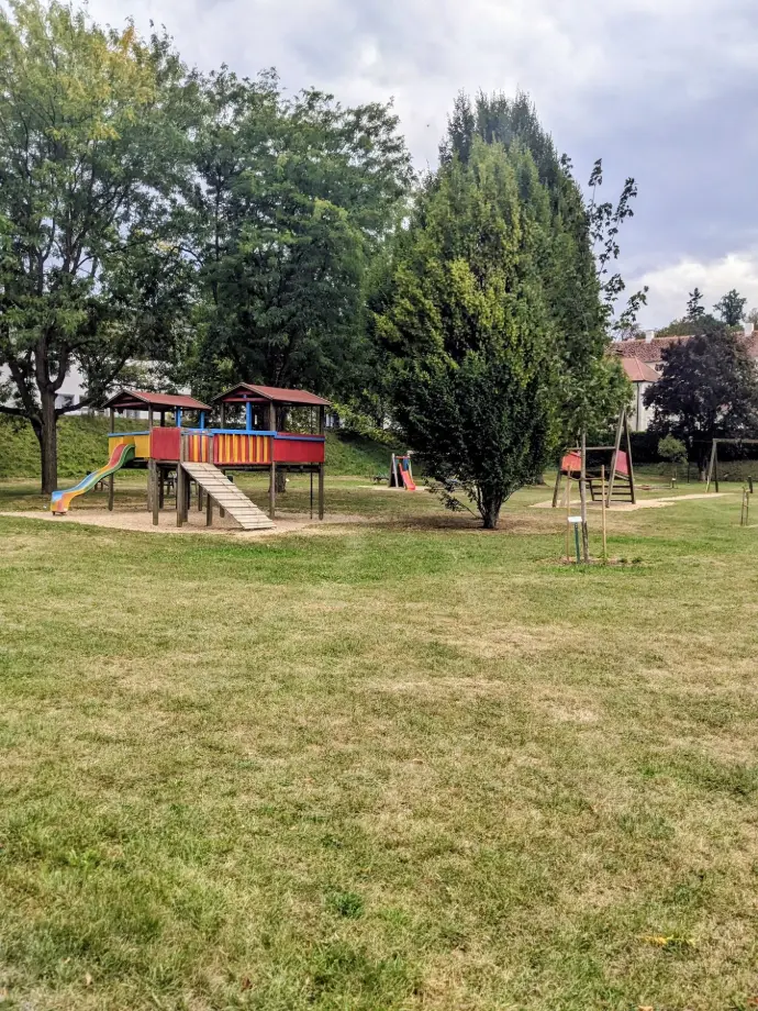 - Grünfläche mit Sitzgelegenheiten und Kinderspielplatz